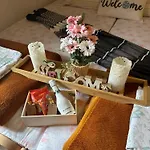Villan inkluderar ett badrum med en separat toalett. Badlakan och handdukar finns också för din bekvämlighet.